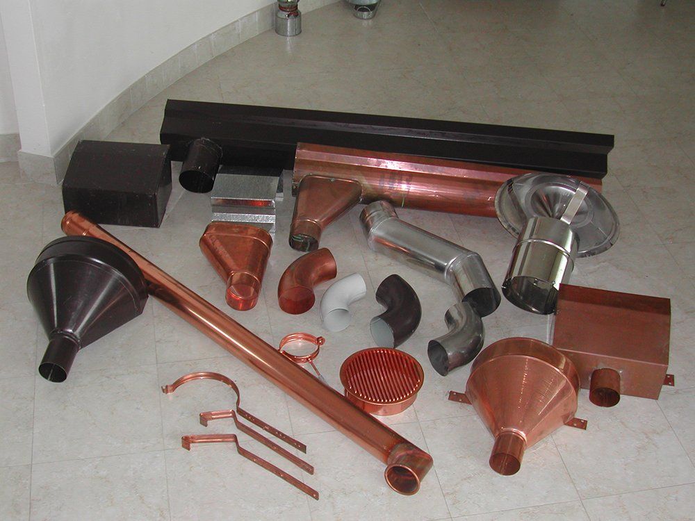 • Tubi pluviali,curve ,collari e pezzi speciali in lamiera preverniciata,acciaio inox, rame e